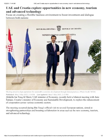 5/22/25, 11:44 AM UAE and Croatia explore opportunities in new economy, tourism and advanced technology