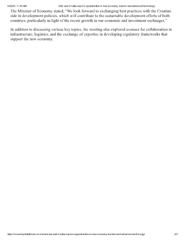 5/22/25, 11:44 AM UAE and Croatia explore opportunities in new economy, tourism and advanced technology