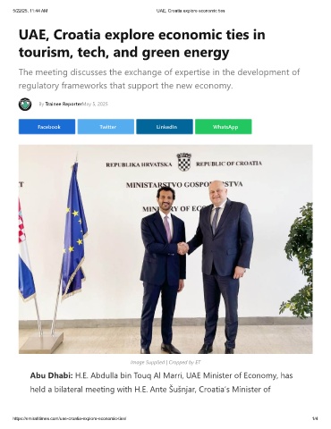 5/22/25, 11:44 AM UAE, Croatia explore economic ties