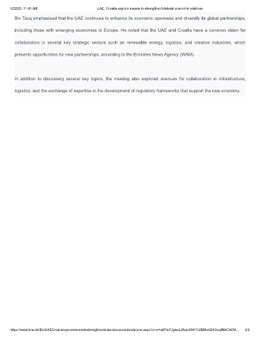 5/22/25, 11:45 AM UAE, Croatia explore means to strengthen bilateral economic relations