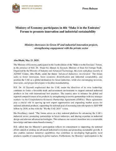 The Ministry of Economy participated in the fourth edition of the ‘Make it in the Emirates’ Forum,