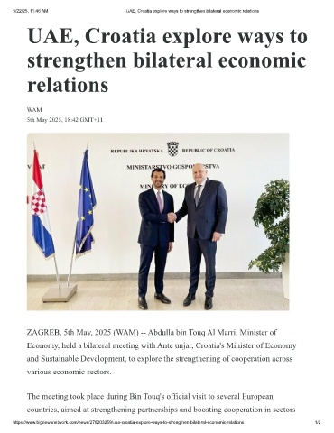 5/22/25, 11:46 AM UAE, Croatia explore ways to strengthen bilateral economic relations