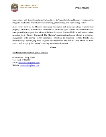 property, innovation, and industrial sustainability, underscoring its support for entrepreneurs and