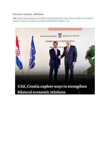 Publication: Facebook – UAE Forsan Link: https://www.facebook.com/UAE.Forsan/photos/uae-croatia-explore-ways-to-strengthen- bilateral-economic-relations-ministry-of-/704595521915051/?_rdr