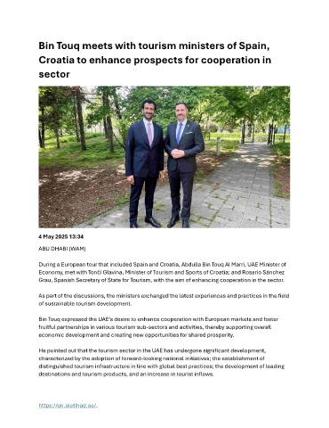 During a European tour that included Spain and Croatia, Abdulla Bin Touq Al Marri, UAE Minister of