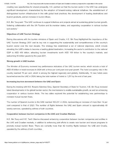 promote mutual tourism flows. There are currently more than 42 monthly flights between the UAE and Croatia,