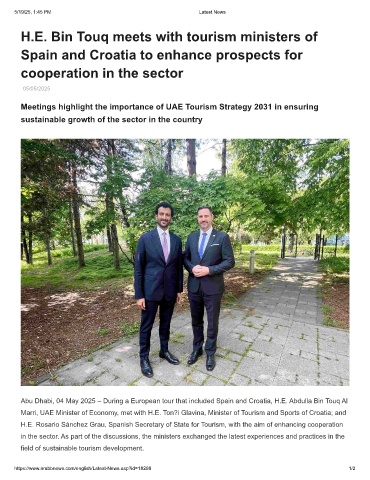 Marri, UAE Minister of Economy, met with H.E. Ton?i Glavina, Minister of Tourism and Sports of Croatia; and