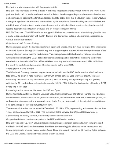 entities in the UAE and Croatian markets, in addition to enhancing joint efforts to create new tourism and