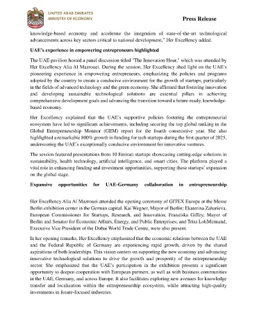 Her Excellency explained that the UAE’s supportive policies fostering the entrepreneurial