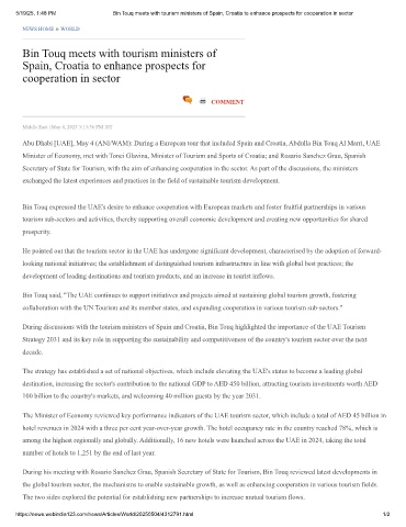 5/19/25, 1:48 PM Bin Touq meets with tourism ministers of Spain, Croatia to enhance prospects for cooperation in sector