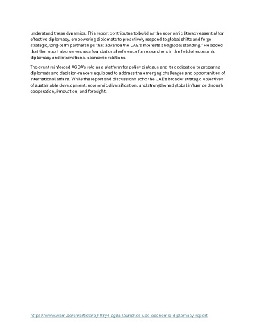 international affairs. While the report and discussions echo the UAE’s broader strategic objectives