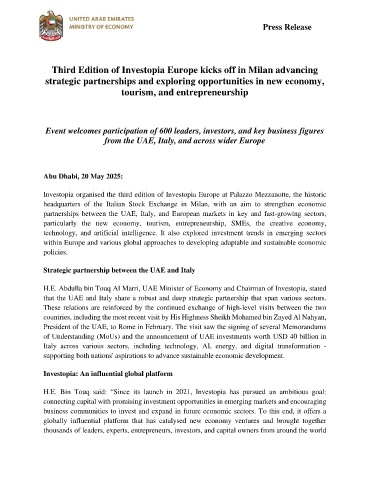 partnerships between the UAE, Italy, and European markets in key and fast-growing sectors,