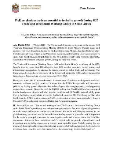 HE Juma Al Kait said: “The second meeting of the G20 Trade and Investment Working Group