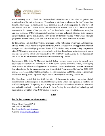 Furthermore, H.E. Alia Al Mazrouei invited Italian women entrepreneurs to expand their