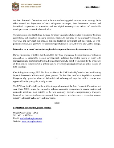 During his meeting with H.E. Petr Kolář, H.E. Bin Touq emphasized the significance of bolstering