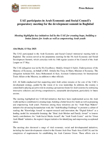 The UAE participated in the Arab Economic and Social Council ministerial meeting held in