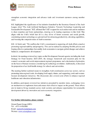 H.E. Al Saleh said: “We reaffirm the UAE's commitment to supporting all Arab efforts aimed at