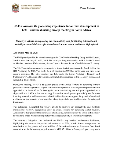 The UAE participated in the second meeting of the G20 Tourism Working Group held in Durban,