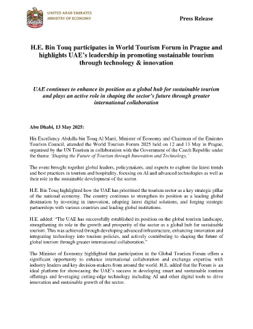 H.E. Bin Touq highlighted how the UAE has prioritised the tourism sector as a key strategic pillar