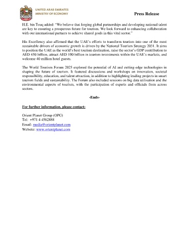 His Excellency also affirmed that the UAE’s efforts to transform tourism into one of the most