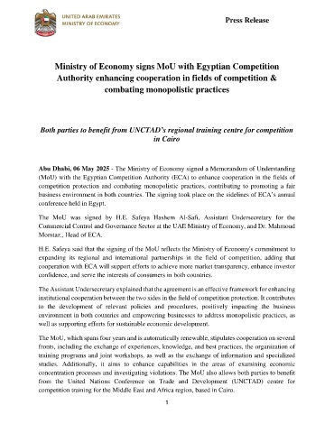 (MoU) with the Egyptian Competition Authority (ECA) to enhance cooperation in the fields of
