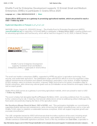 (www.KhalifaFund.ae) is supporting 10 Emirati SMEs to participate in Grains Africa 2025, a leading global event