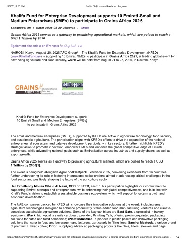 (www.KhalifaFund.ae) is supporting 10 Emirati SMEs to participate in Grains Africa 2025, a leading global event for