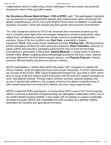 KFED’s participation in Grains Africa 2025 will enable UAE companies to expand into