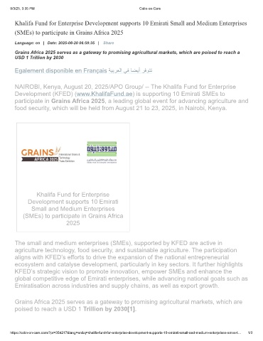 NAIROBI, Kenya, August 20, 2025/APO Group/ -- The Khalifa Fund for Enterprise