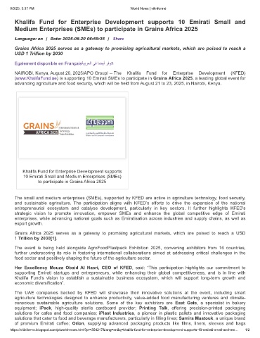(www.KhalifaFund.ae) is supporting 10 Emirati SMEs to participate in Grains Africa 2025, a leading global event for