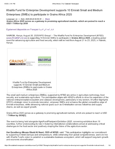 (www.KhalifaFund.ae) is supporting 10 Emirati SMEs to participate in Grains Africa 2025, a leading global