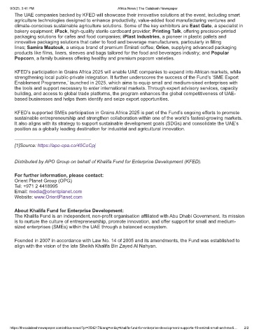 KFED’s participation in Grains Africa 2025 will enable UAE companies to expand into African markets, while
