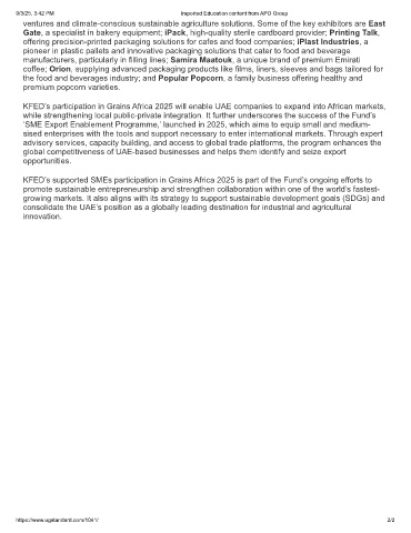 KFED’s participation in Grains Africa 2025 will enable UAE companies to expand into African markets,