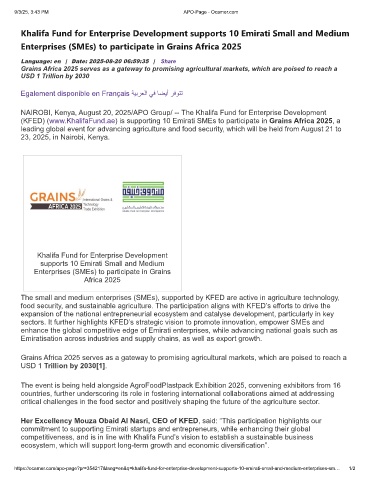 (KFED) (www.KhalifaFund.ae) is supporting 10 Emirati SMEs to participate in Grains Africa 2025, a