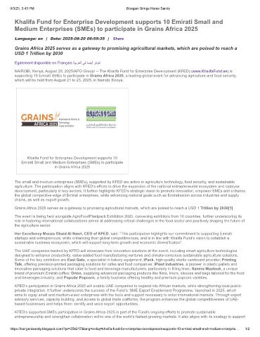 supporting 10 Emirati SMEs to participate in Grains Africa 2025, a leading global event for advancing agriculture and food security,