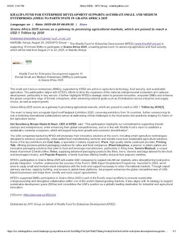 NAIROBI, Kenya, August 20, 2025/APO Group/ -- The Khalifa Fund for Enterprise Development (KFED) (www.KhalifaFund.ae) is