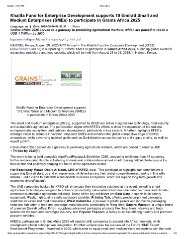 KFED’s participation in Grains Africa 2025 will enable UAE companies to expand into African markets, while