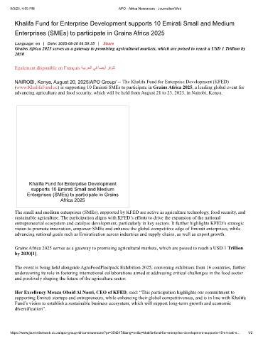 (www.KhalifaFund.ae) is supporting 10 Emirati SMEs to participate in Grains Africa 2025, a leading global event for
