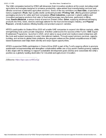 KFED’s participation in Grains Africa 2025 will enable UAE companies to expand into African markets, while