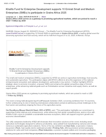 (www.KhalifaFund.ae) is supporting 10 Emirati SMEs to participate in Grains Africa 2025, a leading global event for