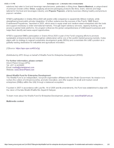 KFED’s participation in Grains Africa 2025 will enable UAE companies to expand into African markets, while
