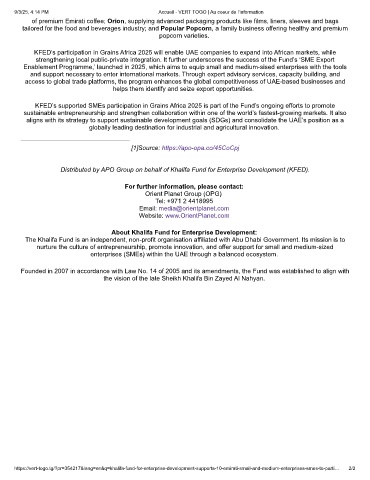 KFED’s participation in Grains Africa 2025 will enable UAE companies to expand into African markets, while
