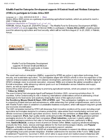 (www.KhalifaFund.ae) is supporting 10 Emirati SMEs to participate in Grains Africa 2025, a leading global