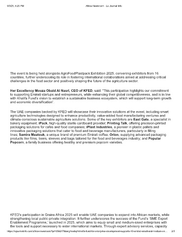KFED’s participation in Grains Africa 2025 will enable UAE companies to expand into African markets, while