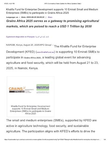 Enterprises (SMEs) to participate in Grains Africa 2025