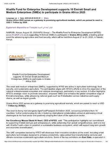 (www.KhalifaFund.ae) is supporting 10 Emirati SMEs to participate in Grains Africa 2025, a leading global