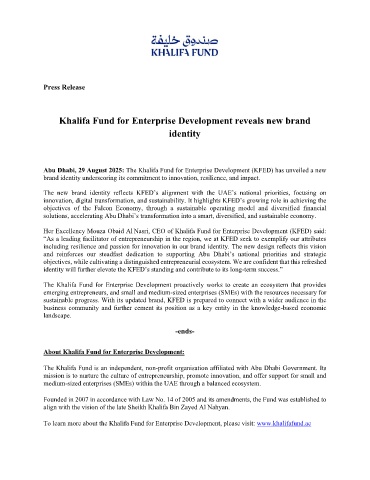Abu Dhabi, 29 August 2025: The Khalifa Fund for Enterprise Development (KFED) has unveiled a new