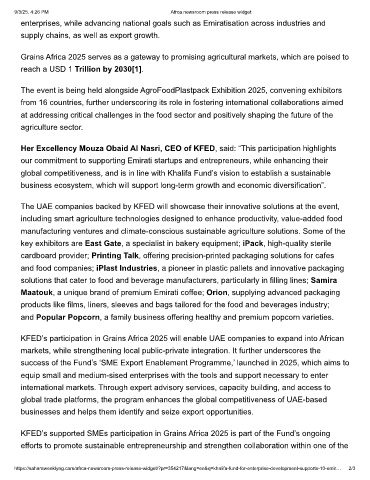 KFED’s participation in Grains Africa 2025 will enable UAE companies to expand into African