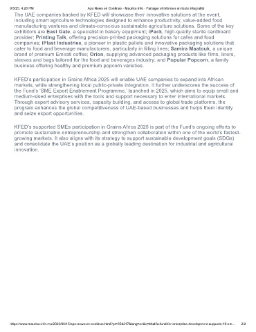 KFED’s participation in Grains Africa 2025 will enable UAE companies to expand into African