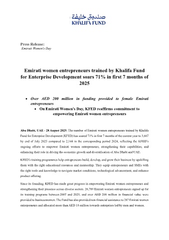 • On Emirati Women's Day, KFED reaffirms commitment to